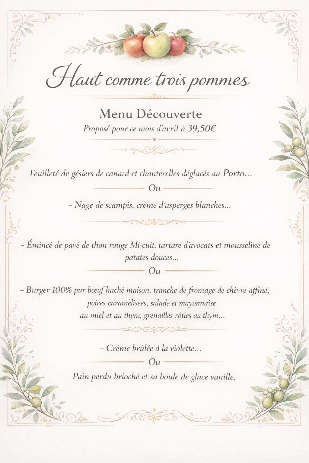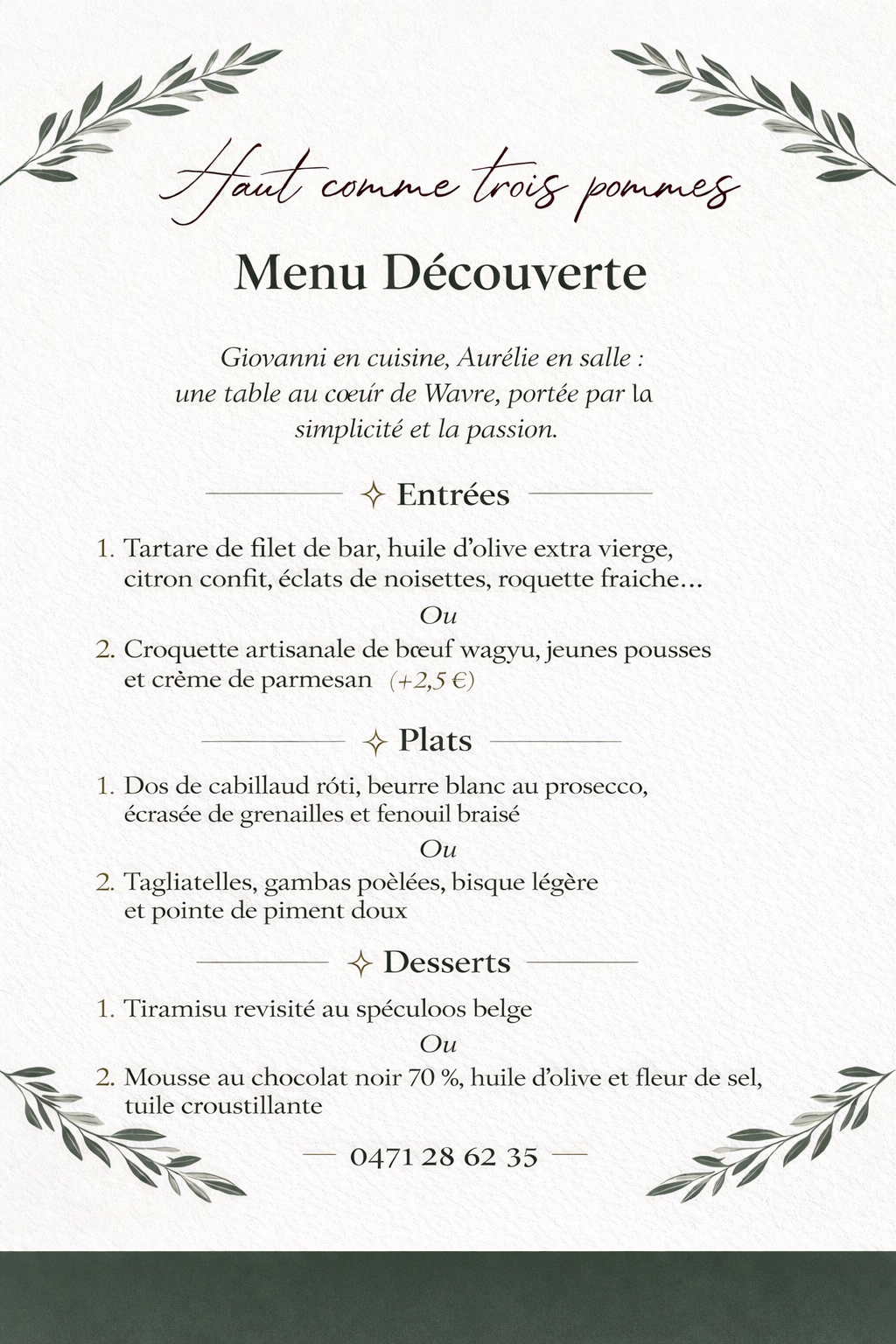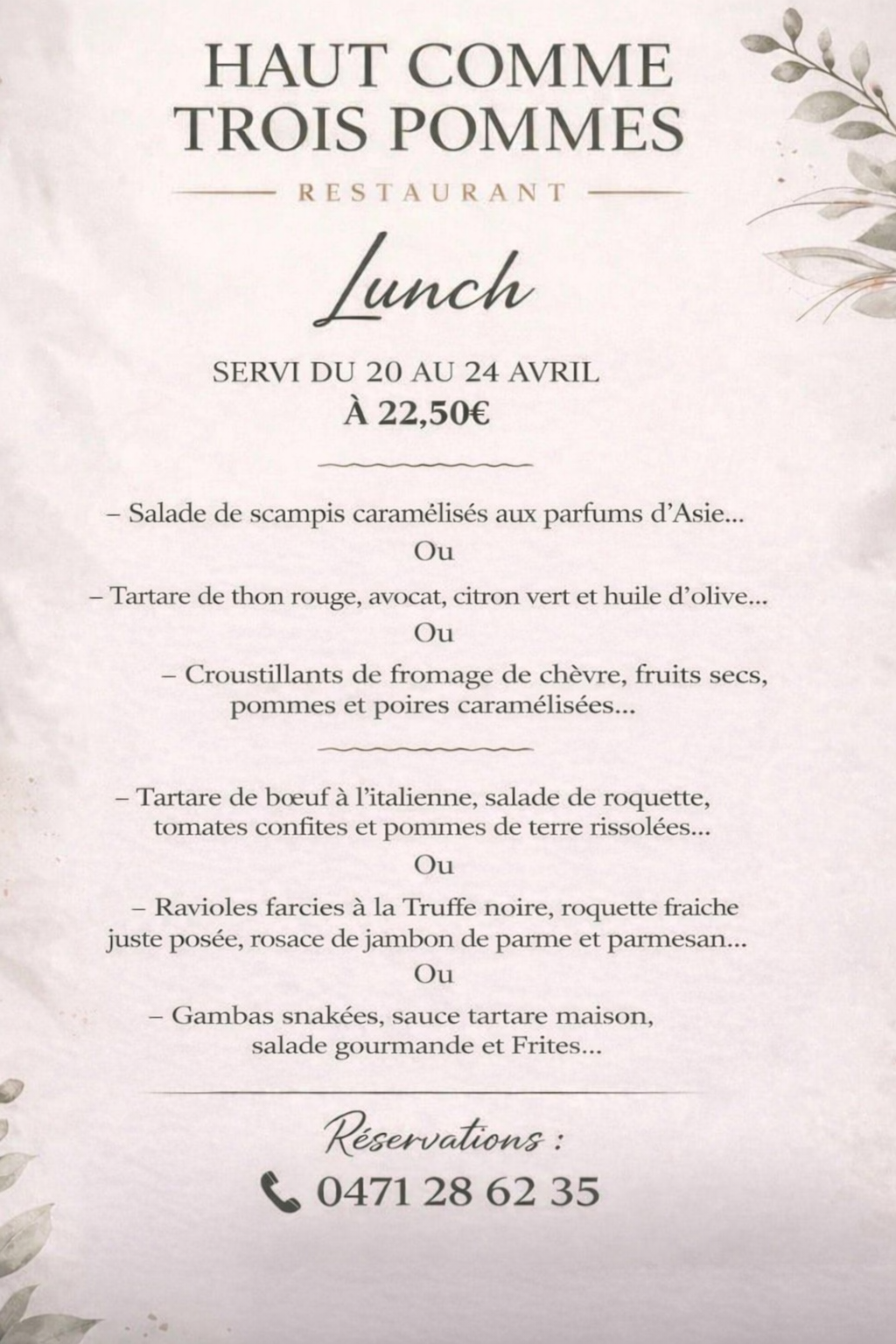 CALL +320471/28.62.35Bienvenue au Restaurant Haut Comme Trois Pommes